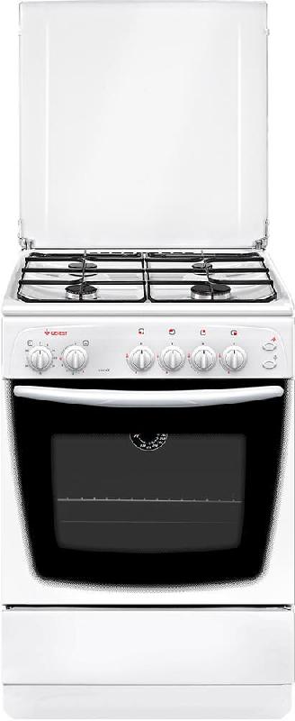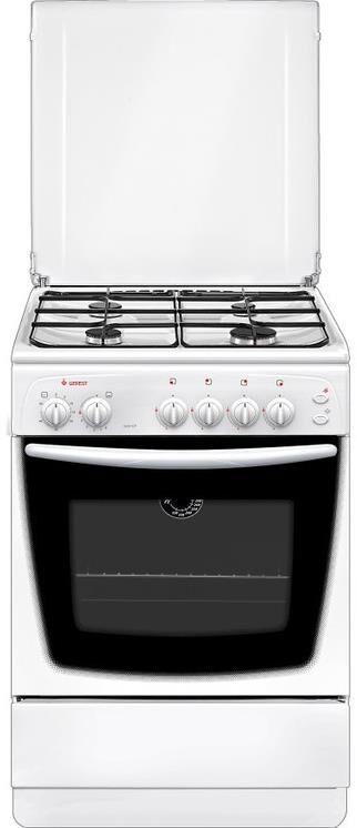 Газовая плита. Габариты ШхГхВ: 60х60х85 см. Цвет: белый. Варочная поверхность: эмалированная. Полезный объём духовки: 63 л. Выдвижной ящик для посуды и принадлежностей. Таймер механический. Газ-контроль духовки. Термоуказатель духовки. Ножки регулировочные. Штампованные направляющие духовки. Подсветка духовки одинарная. Электророзжиг горелок, кнопка розжига на панели. Стальные решетки горелок стола. Количество зон приготовления: 4. Металлическая крышка. Класс электробезопасности: II.