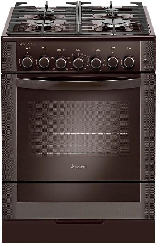 Габариты, ШхГхВ, см: 60x60x85; Цвет: коричневый; Дизайн: классический; Ширина, см: 60; Фасад: закаленное стекло; Варочная поверхность: закаленное стекло; Решетки стола: чугунные; Присоединительная резьба газопровода: G 1/2; Класс энергоэффективности: A; Номинальная потребляемая мощность электроэнергии, кВт: 1,84-2,02; Тип духовки: электрическая; Мощность верхнего ТЭН духовки, кВт: 0,8; Мощность нижнего ТЭН духовки, кВт: 1,2; Объем духовки, л: 55; Таймер: электромеханический; Электророзжиг горелок стола: кнопка на панели; Гриль: электрический; Вертел с электроприводом; Подсветка духовки: одинарная; Направляющие духовки: съемные проволочные; Терморегулятор (термостат); Ящик для посуды и принадлежностей: выдвижной ящик; Ножки регулировочные; Сетевой шнур и вилка: в наличии; Комплектность: жаровня, накладка для посуды малого диаметра, комплект сменных сопел, решетка духовки