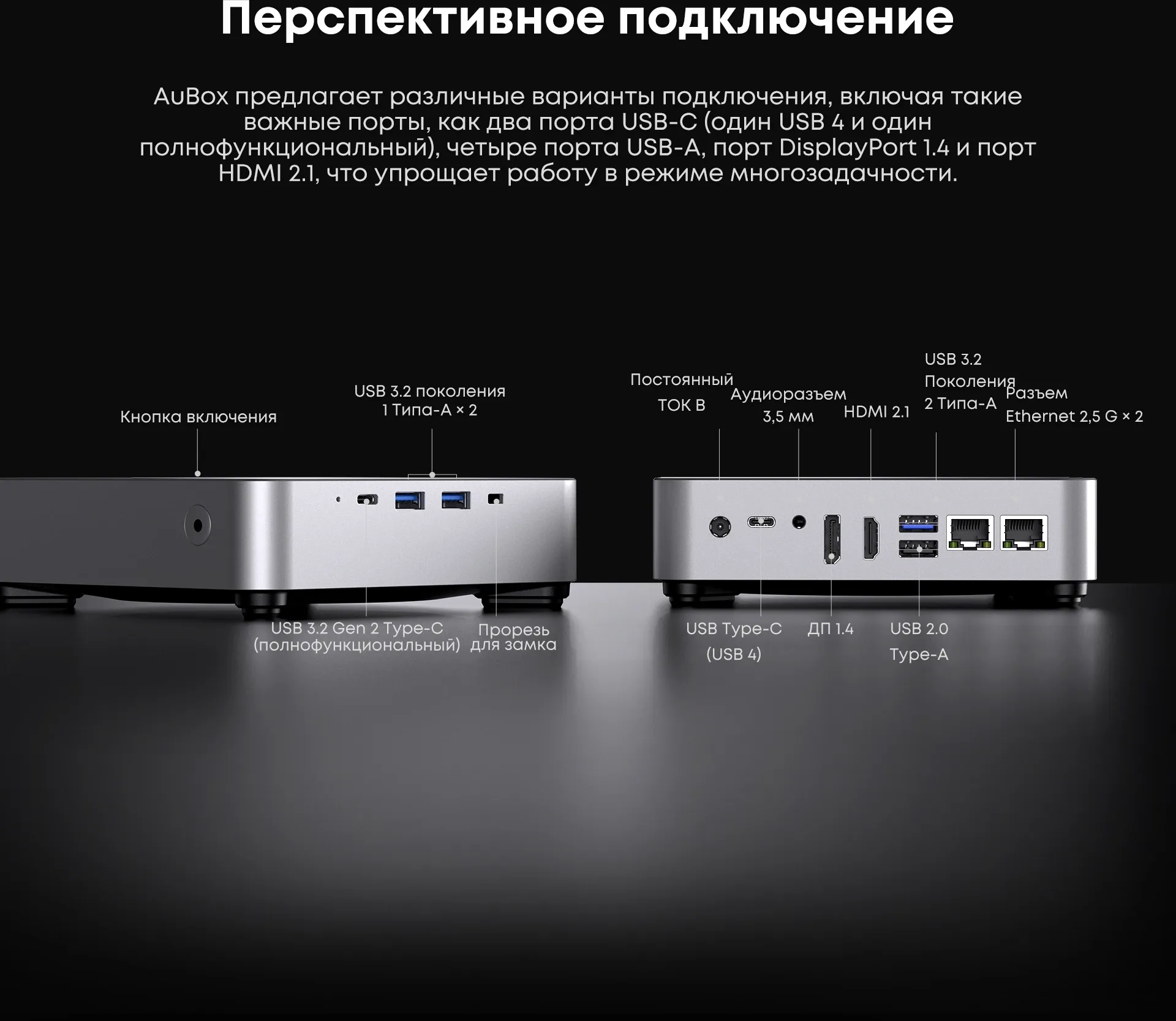 ПК Мини Chuwi AuBox Core i9 13900HK (2.6) 32Gb SSD1Tb Iris Xe Windows 11 Pro 2x2.5GbitEth WiFi BT 120W серебристый/черный
