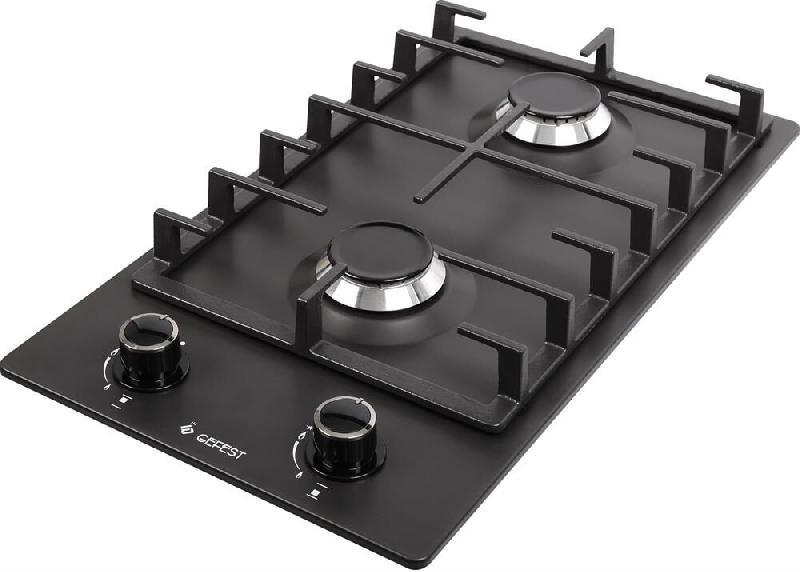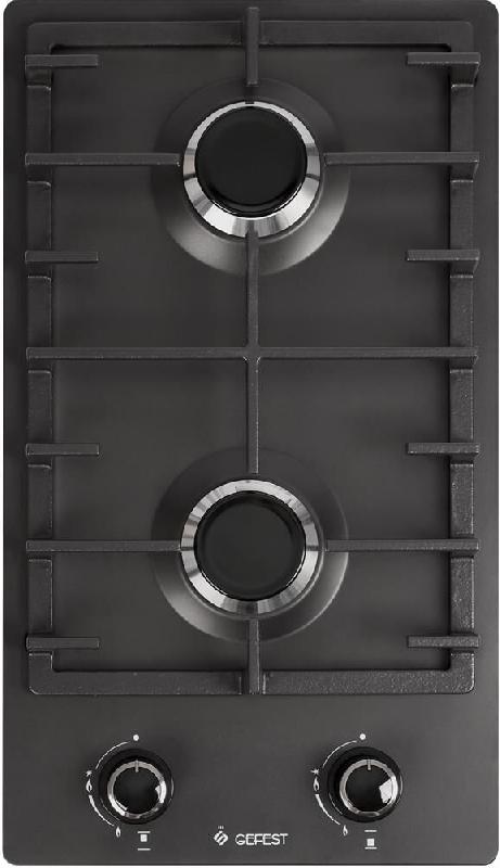 Габаритные размеры ШхГхВ: 30х53х9,5 см * Цвет: черный * Эмалированная варочная поверхность * Двухгорелочный стол * Газ-контроль горелок стола * чугунные решетки горелок стола * две средние горелки * фиксированное положение «малое пламя» * электророзжиг горелок, встроенный в ручки *