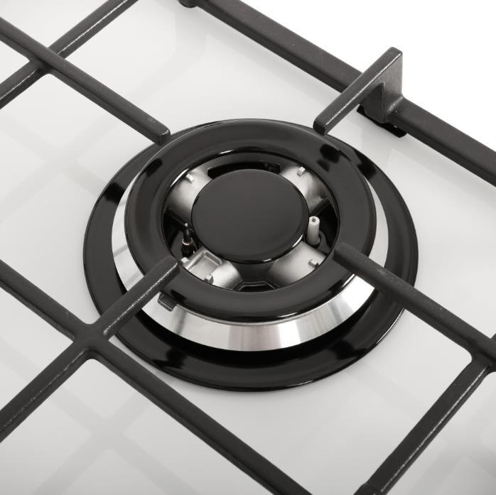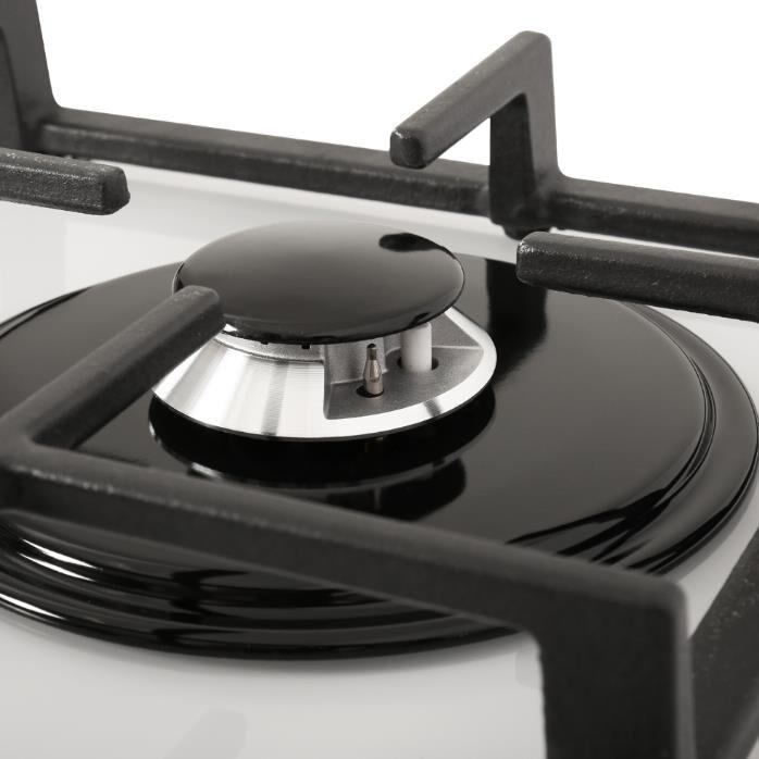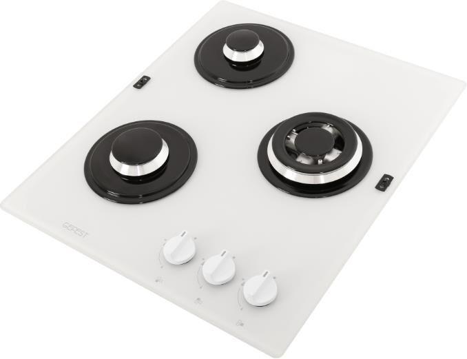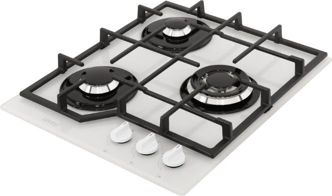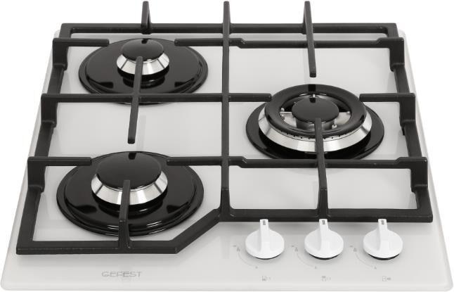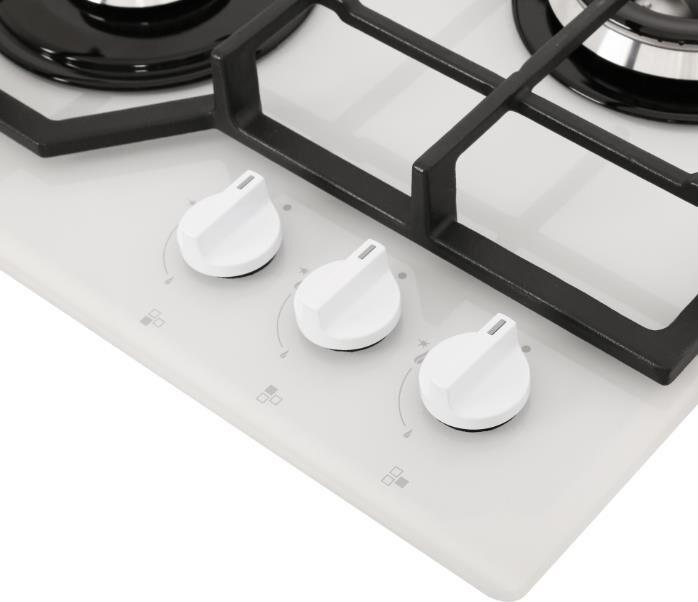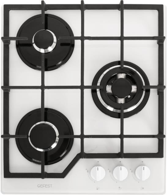 Габариты ВхШхГ, см: 10х45х52,5; Размеры монтажного проема, ШхГ, см: 40,6 х 48,6; Тип подключения: Газовый; Количество зон приготовления: 3; Цвет модели: Белый; Материал варочной поверхности: Стекло; Материал решеток варочной поверхности: Чугун; Двухзонная горелка варочной поверхности; Газ-контроль горелок стола; Электророзжиг горелок стола: Розжиг встроен в ручки; Управление конфорками стола: Механическое; Диапазон номинального напряжения сети, В: 220-230; Номинальная частота сети, Гц: 50