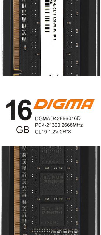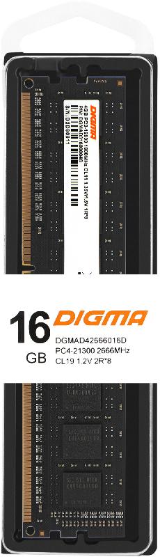 Память DDR4 16Gb 2666MHz Digma DGMAD42666016D RTL PC4-21300 CL19 DIMM 288-pin 1.2В dual rank Ret