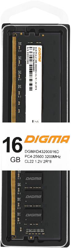 Память DDR4 16Gb 3200MHz Digma DGMAD43200016D RTL PC4-25600 CL22 DIMM 288-pin 1.2В dual rank Ret