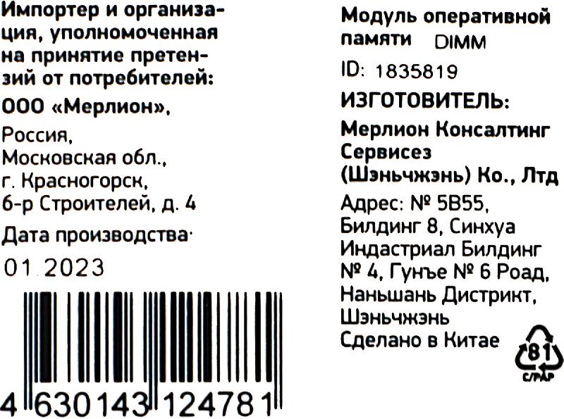 | Обозначение памяти (только для Ситилинка) | UDIMM |