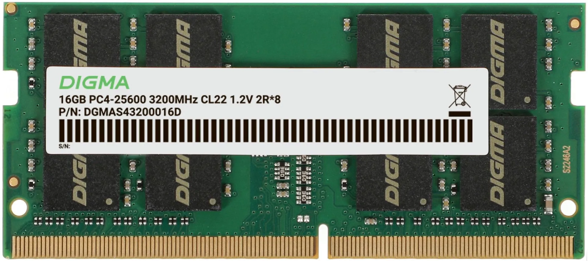 Память DDR4 16Gb 3200MHz Digma DGMAS43200016D RTL PC4-25600 CL22 SO-DIMM 260-pin 1.2В dual rank Ret