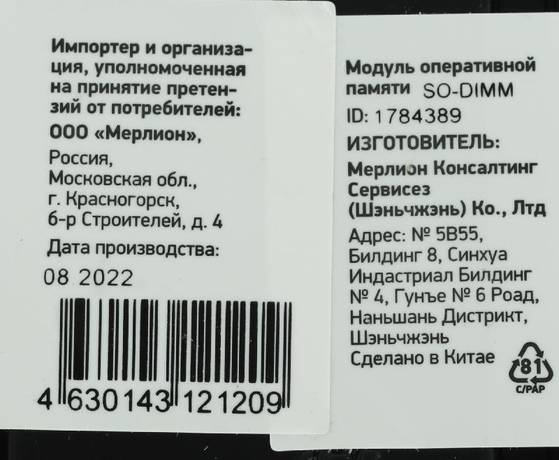 | Обозначение памяти (только для Ситилинка) | SO-DIMM |