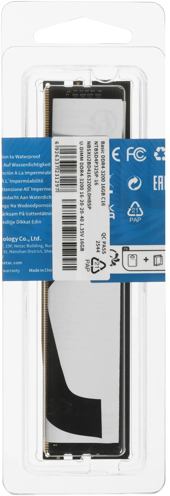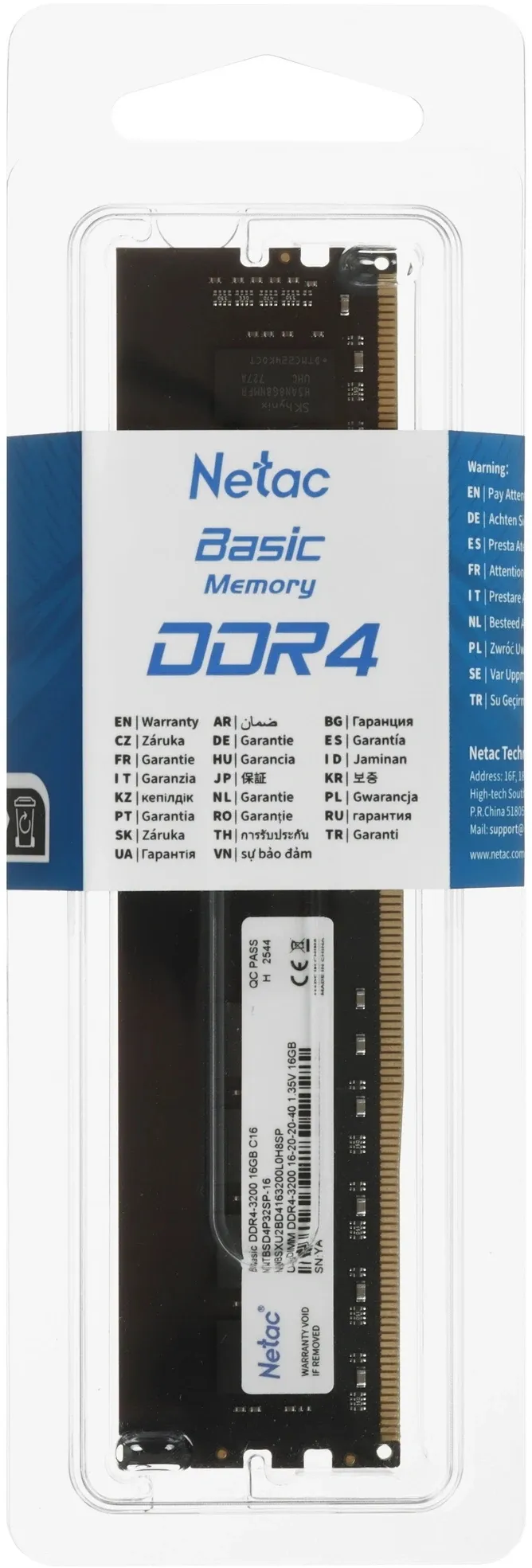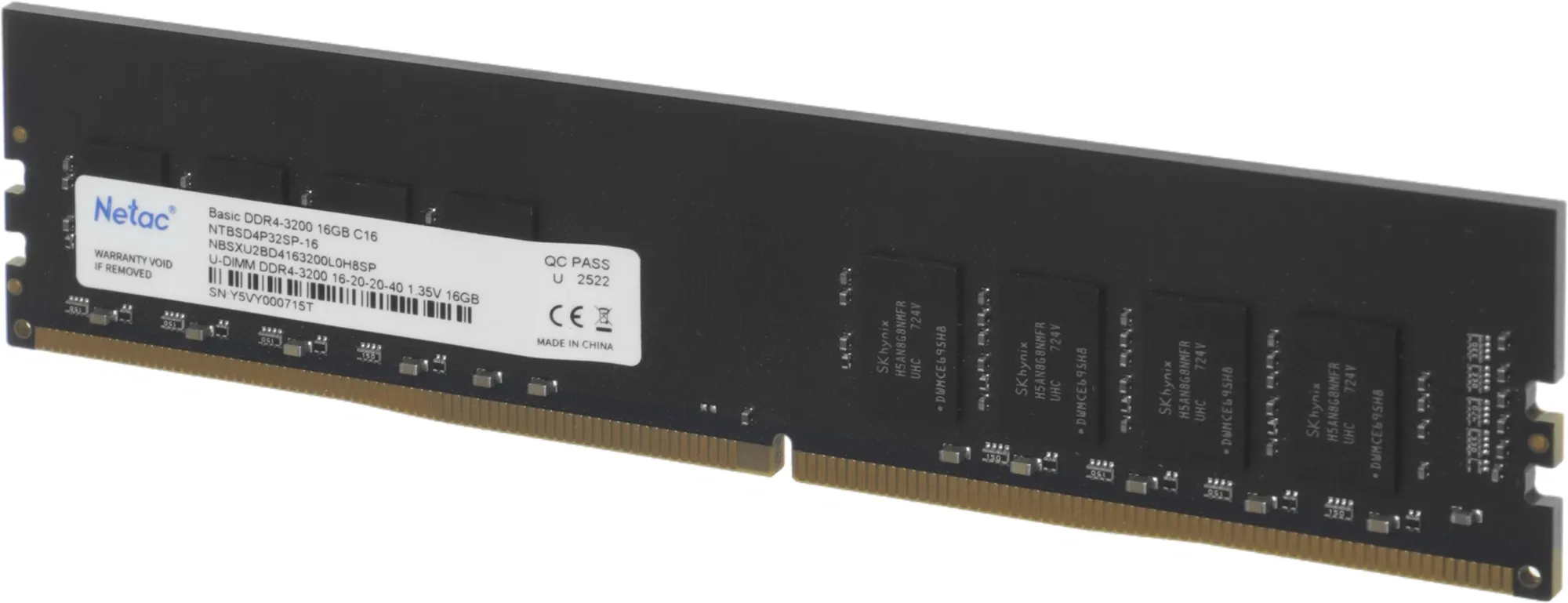 Память DDR4 16GB 3200MHz Netac NTBSD4P32SP-16 Basic OEM PC4-25600 CL16 DIMM 288-pin 1.35В single rank OEM