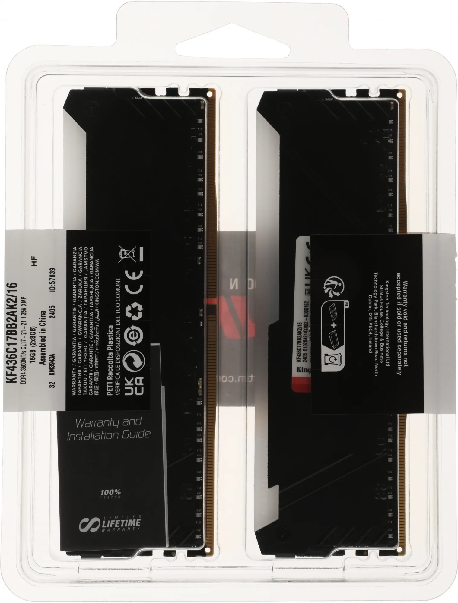 Память DDR4 2x8GB 3600MHz Kingston KF436C17BB2AK2/16 Fury Beast RGB RTL Gaming PC4-28800 CL17 DIMM 288-pin 1.35В kit single rank с радиатором Ret