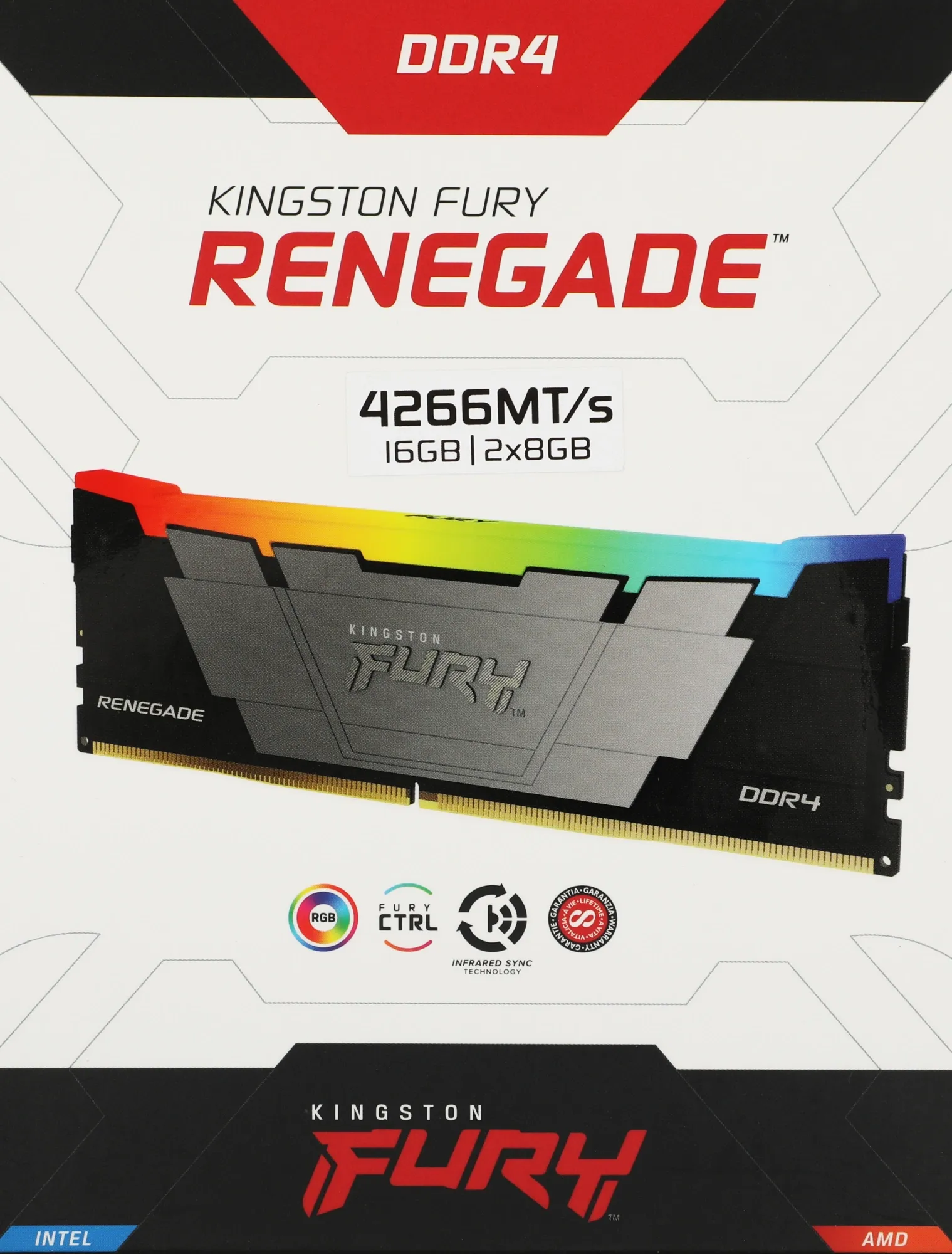 Память DDR4 2x8GB 4266MHz Kingston KF442C19RB2AK2/16 Fury Renegade RGB RTL Gaming PC4-34100 CL19 DIMM 288-pin 1.4В kit single rank с радиатором Ret