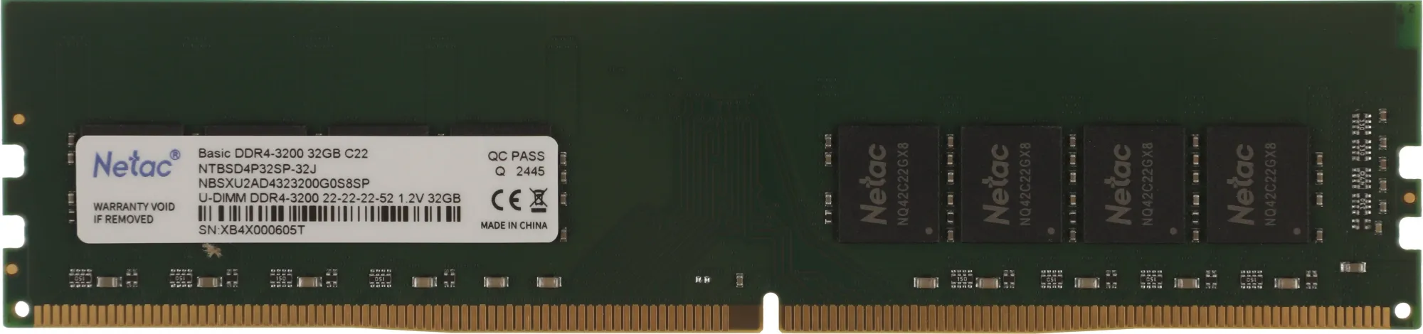 Память DDR4 32GB 3200MHz Netac NTBSD4P32SP-32J Basic RTL PC4-25600 CL22 DIMM 288-pin 1.2В single rank Ret