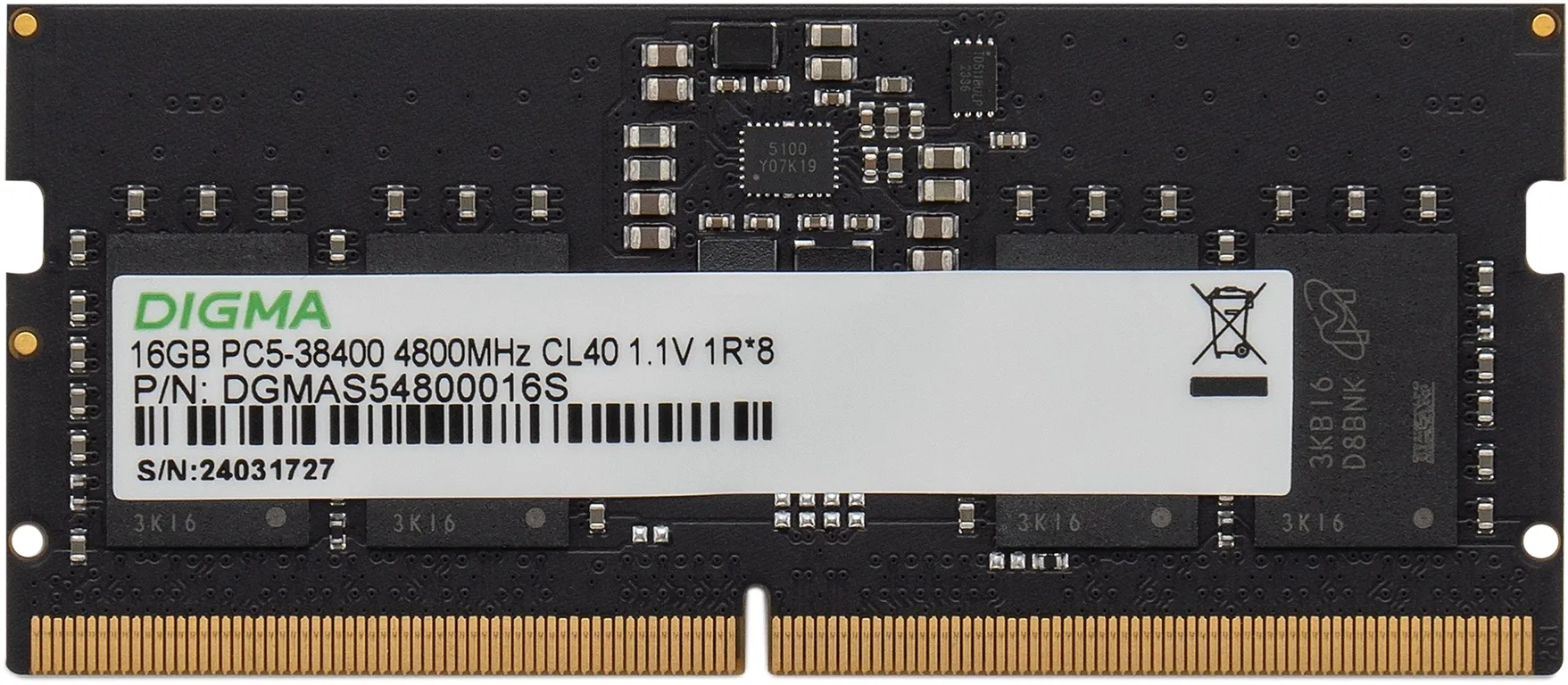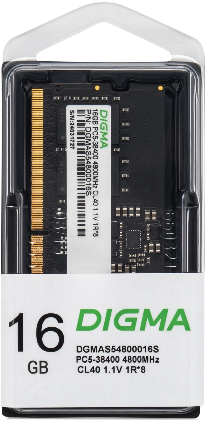 Память DDR5 16GB 4800MHz Digma DGMAS54800016S RTL PC5-38400 CL40 SO-DIMM 262-pin 1.1В single rank Ret