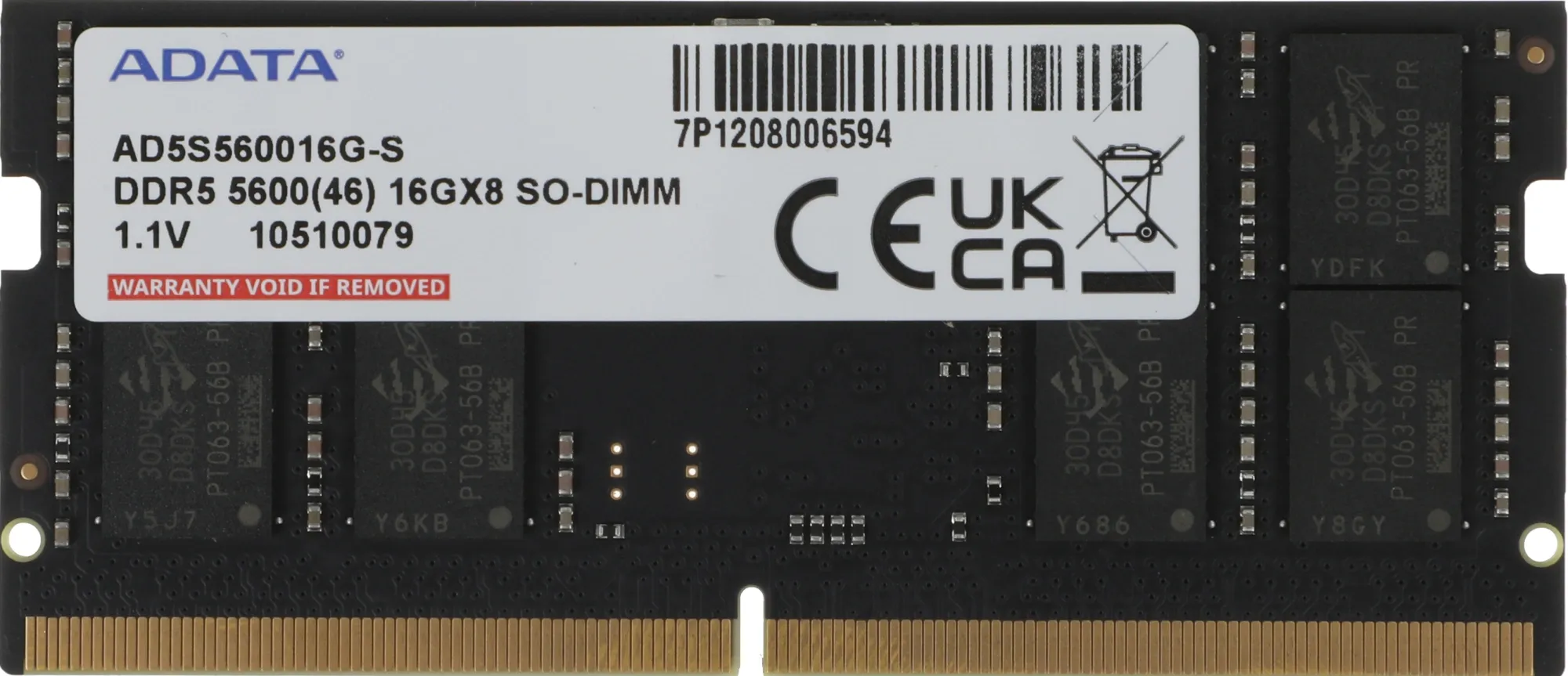 Память DDR5 16GB 5600MHz A-Data AD5S560016G-S RTL PC5-44800 CL46 SO-DIMM 262-pin 1.1В single rank Ret