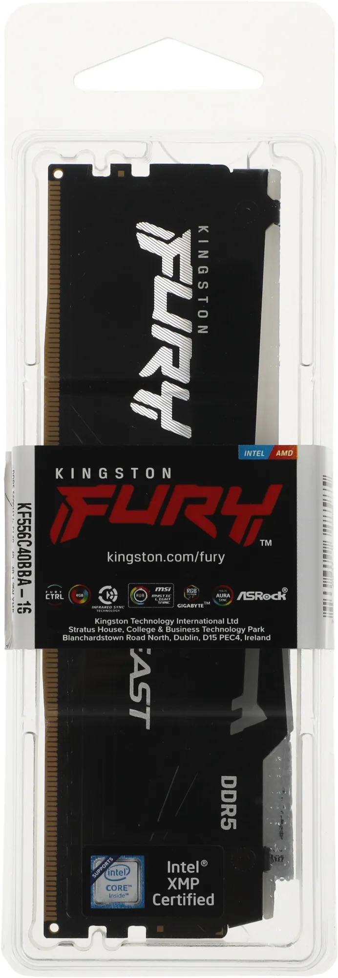 Память DDR5 16GB 5600MHz Kingston KF556C40BBA-16 Fury Beast XMP RGB RTL Gaming PC5-44800 CL40 DIMM 288-pin 1.25В dual rank с радиатором Ret