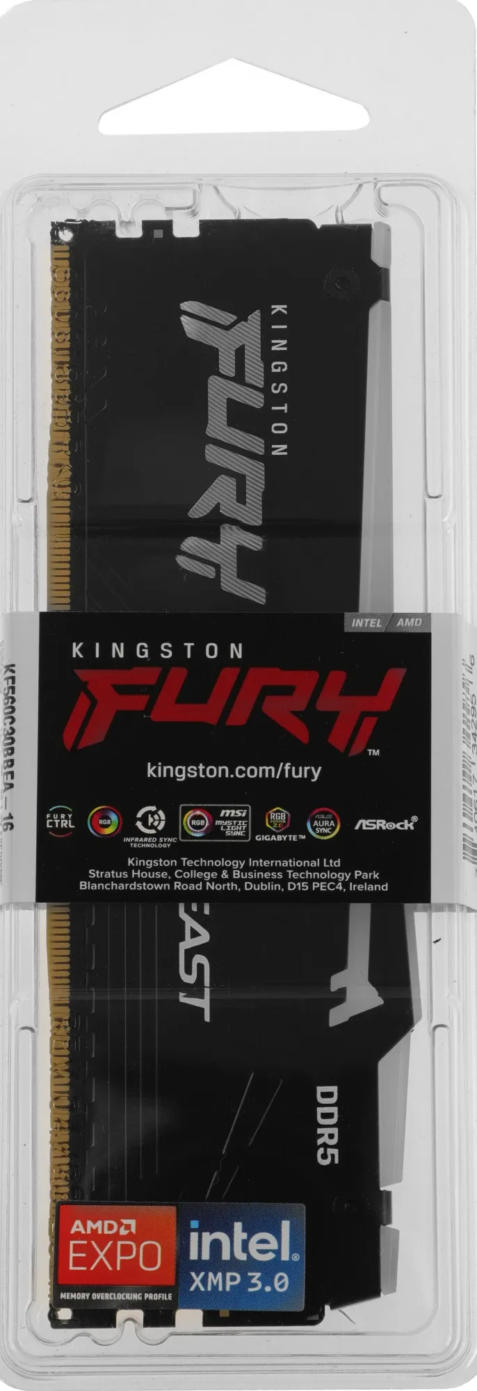 Память DDR5 16GB 6000MHz Kingston KF560C30BBEA-16 Fury Beast Black Expo RGB RTL Gaming PC5-48000 CL30 DIMM 288-pin 1.4В kit single rank с радиатором Ret