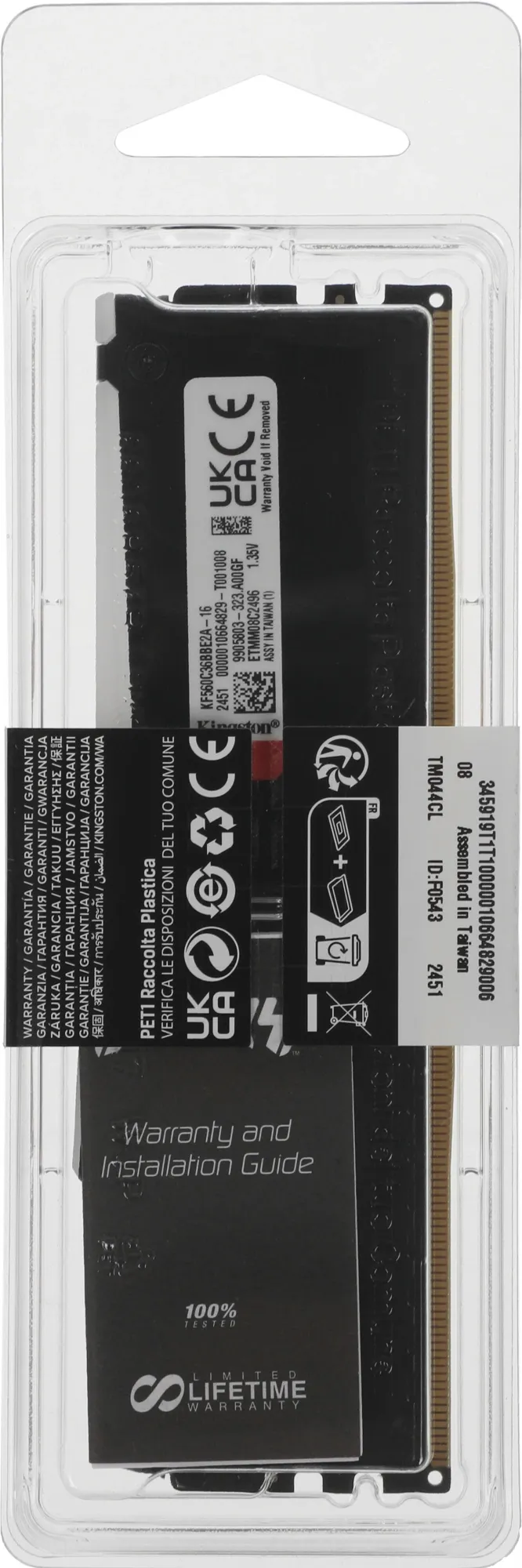 Память DDR5 16GB 6000MHz Kingston KF560C36BBE2A-16 Fury Beast RGB RTL Gaming PC5-48000 CL36 DIMM 288-pin 1.35В single rank с радиатором Ret
