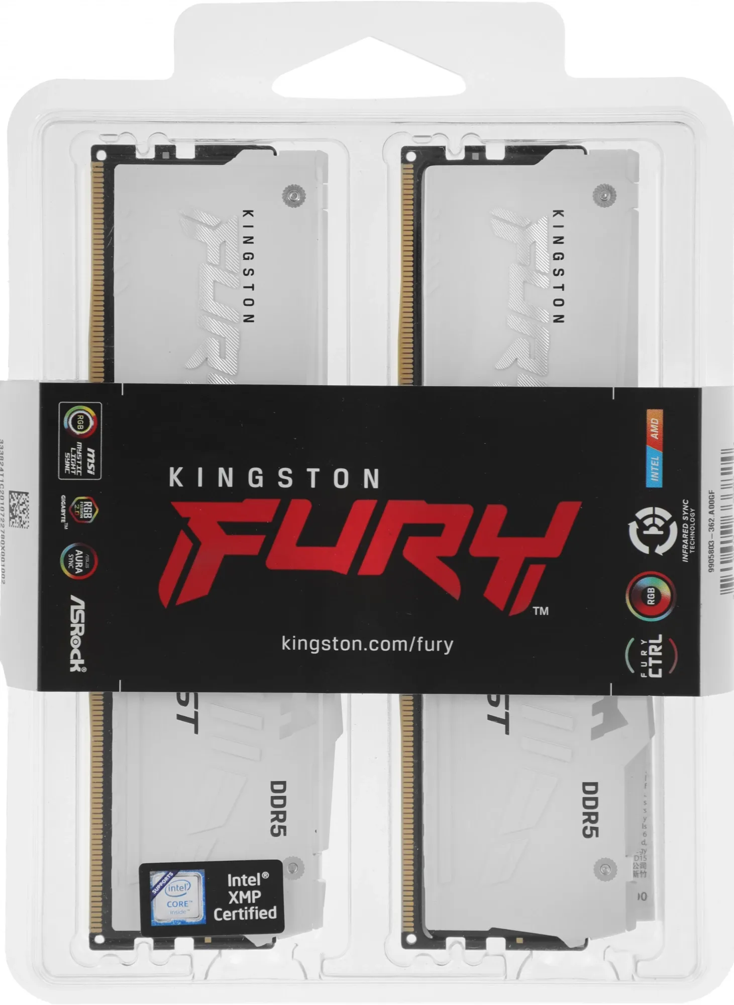 Память DDR5 2x16GB 5600MHz Kingston KF556C40BWAK2-32 Fury Beast RGB RTL Gaming PC5-44800 CL40 DIMM 288-pin 1.25В kit single rank с радиатором Ret