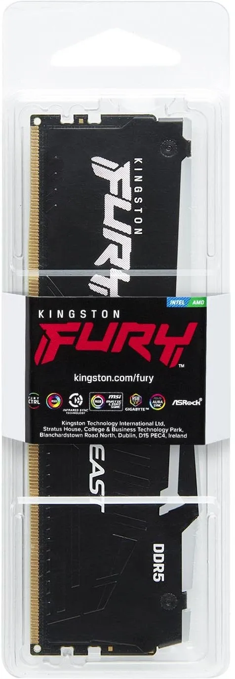 Память DDR5 32GB 5600MHz Kingston KF556C40BB2A-32 Fury Beast Black Expo RGB RTL Gaming PC5-44800 CL40 DIMM 288-pin 1.25В single rank с радиатором Ret