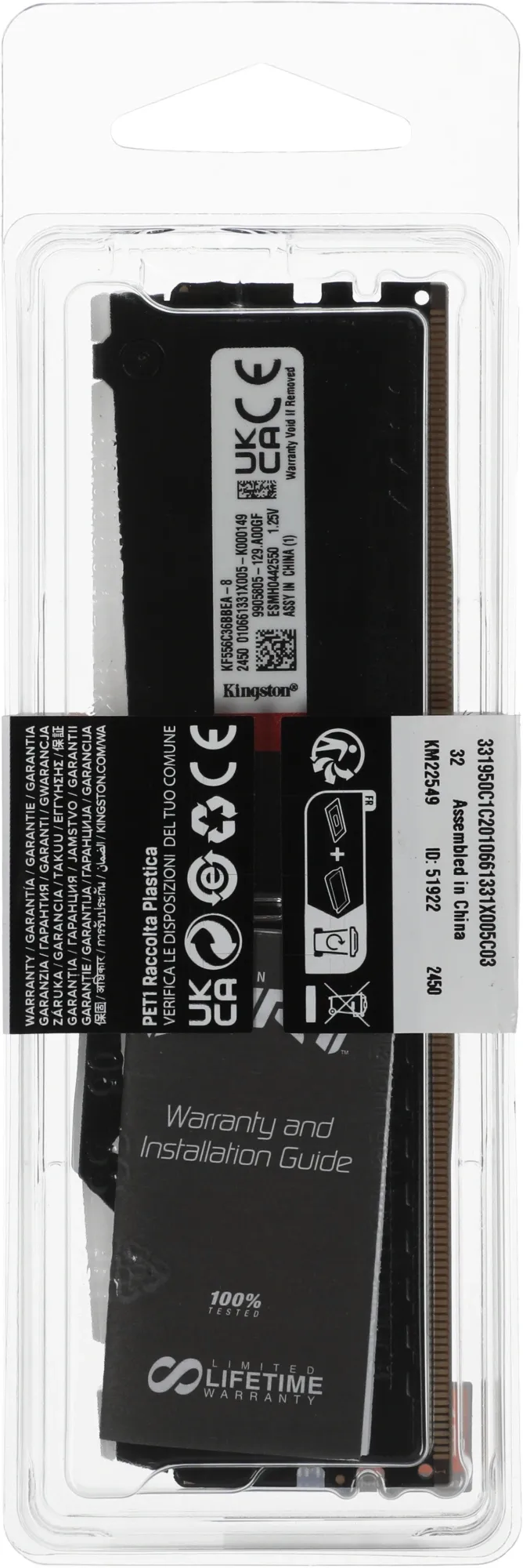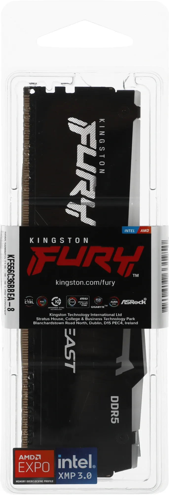 Память DDR5 8GB 5600MHz Kingston KF556C36BBEA-8 Fury Beast Black Expo RGB RTL Gaming PC5-44800 CL36 DIMM 288-pin 1.25В single rank с радиатором Ret