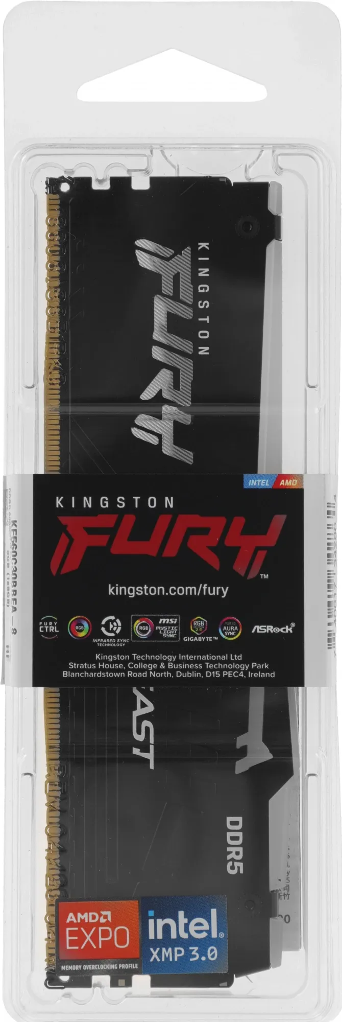 Память DDR5 8GB 6000MHz Kingston KF560C30BBEA-8 Fury Beast Black Expo RGB RTL Gaming PC5-48000 CL30 DIMM 288-pin 1.4В kit single rank с радиатором Ret