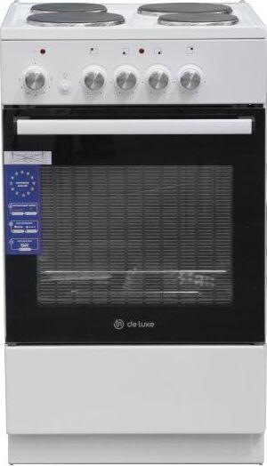 Размеры, мм - высота/ширина/глубина – 850/500/500 * Цвет - белый * 4 электрические конфорки 1,0/1,5/1,5/1,0 кВт * Объём духовки 43 л. * Большой противень * Малый противень * Решётка для жарки * Хозяйственный отсек *