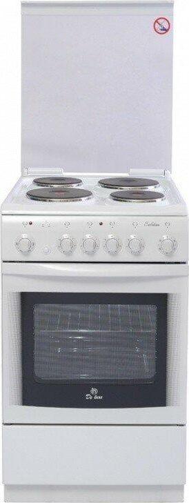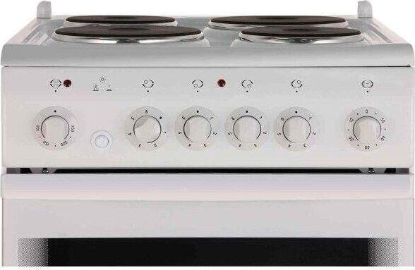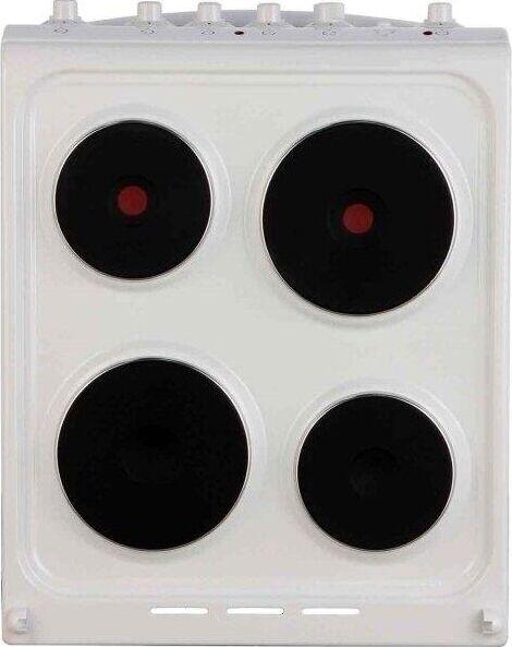 Габариты 850*500*600 Вес, кг - 39 Объём духовки 54 л. Основные характеристики варочной поверхности: 4 электрические конфорки 1,0/1,5/1,5/2,0 кВт Основные характеристики духового шкафа: Терморегулятор Освещение Механический таймер Объём духовки 54 л. Комплектация: Большой противень Малый противень Решётка для жарки Стеклянная крышка рабочего стола Хозяйственный отсек Техническое описание: Цвет - белая