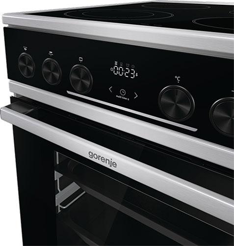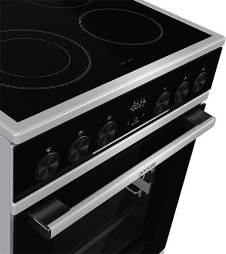 Электрическая плита Gorenje GEC5C61XPA — образец современной бытовой техники. Корпус и фурнитура, выполненные в цвете нержавеющей стали прекрасно сочетаются с чёрным стеклом варочной поверхности, панелью управления и дверцей. Применённые новейшие технологии направлены на практичность и комфортное пользование. Модель снабжена удобным электронным управлением с сенсорными кнопками и поворотными утапливаемыми переключателями. Есть часы, показывающие текущее время и таймер с отключением, который можно настроить на определённое время приготовления блюд, об окончании которого возвестит звуковой сигнал.