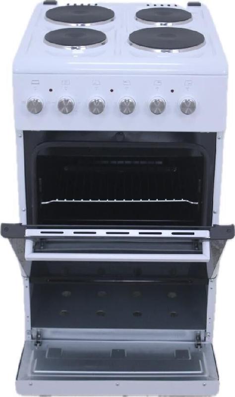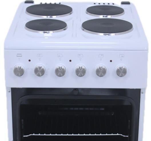 Плита отдельностоящая электрическая 50х60 см электрическая духовка, съемное внутреннее стекло (Cood Door), термостат, подсветка духовки, верхний,нижний тэн, 1 противень, 1 решетка, Рабочая поверхность (2 x ø145 мм - 1200 Вт + 2 x Ø185 мм - 1500 Вт), нижний ящик для посуды, объём духовки 52 л. без крышки. В комплекте: кабель, регулируемые ножки. Цвет Белый. Упаковка картон.