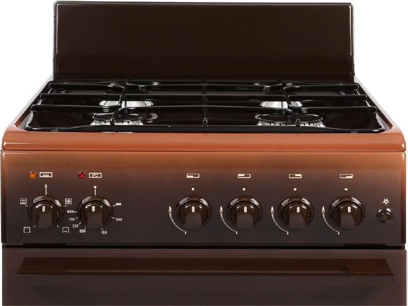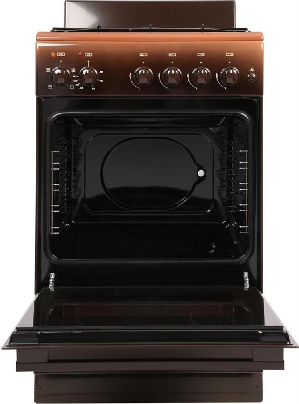 ЭКСКЛЮЗИВ ООО "ТД ОРИОН" *Габаритные размеры ШхГхВ: 50х58,5х85 см * Цвет: коричневый. Варочная поверхность: эмалированная * Объём духовки: 60 л. Духовка: электрическая * Газ-контроль горелок стола * Терморегулятор (термостат) * Подсветка духовки одинарная * Электророзжиг горелок, кнопка розжига на панели * Съемные проволочные направляющие духовки *