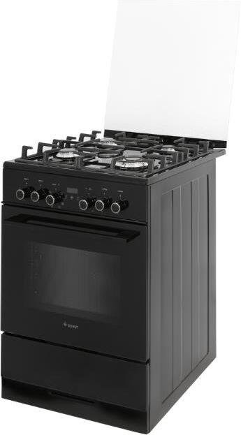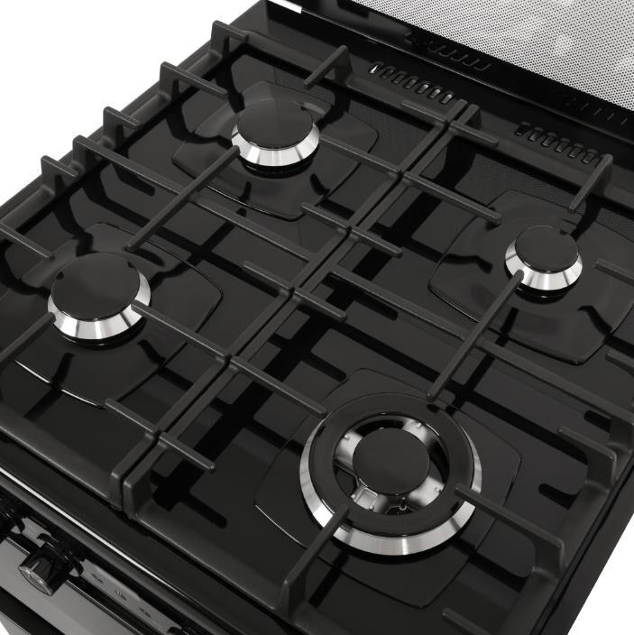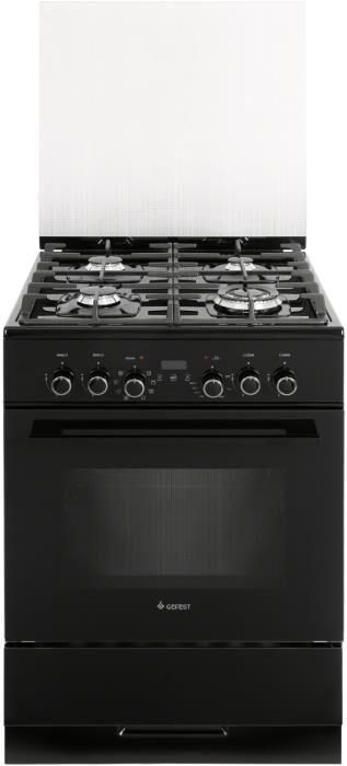 Габариты ШхГхВ, см: 60х60х85; Тип подключения: Газоэлектрический; Объем духового шкафа, л: 55; Количество газовых горелок варочной поверхности: 4; Конвекция; Цвет модели: Черный; Щиток: стекло; Материал варочной поверхности: Стекло; Материал решеток варочной поверхности: Чугун; Двухзонная горелка варочной поверхности; Газ-контроль горелок стола; Электророзжиг горелок стола: Розжиг встроен в ручки; Таймер: Сенсорный; Тип направляющих духового шкафа: Съемные проволочные; Тип очистки: Гидролизная; Внутреннее покрытие духового шкафа: Эмаль легкой очистки SMART CERAMIC; Количество стекол в дверце духового шкафа: 2; Тип духового шкафа: Электрический; Ящик для посуды и принадлежностей: Выдвижной ящик; Внутреннее освещение духового шкафа: Двойное; Контроль температуры духового шкафа: Термостат; Гриль: Электрический; Круговой ТЭН, Вт: 2000; Вертел; Шашлычница; Жаровня: 1; Противень:1; Решетка варочной поверхности: 1; Решетка духового шкафа: 1
