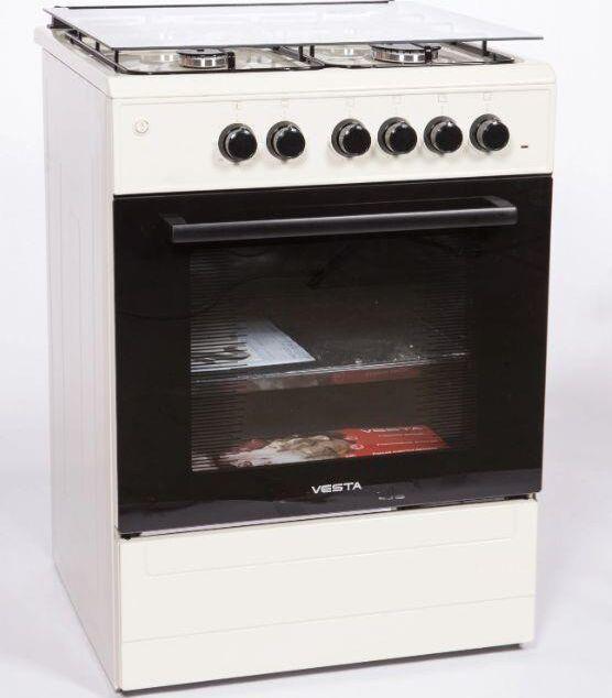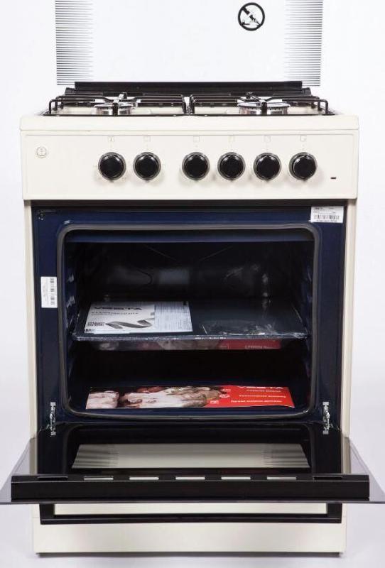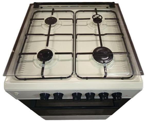 Ширина плиты, см 60; Глубина плиты, см 60; Объем духовки, л 65; Высота, см 85; Тип управления: Механическое; Материал решеток: Чугун; Горелки стола: газовые - 4 шт; Духовка: электрическая; 3 режима духовки; Съемное стекло дверцы духового шкафа; Электроподжиг конфорок; Термостойкое каленое стекло; Стеклянная крышка рабочего стола; Индикатор работы ТЭНа; Решетка рабочего стола: сталь; В комплекте противень: 2шт