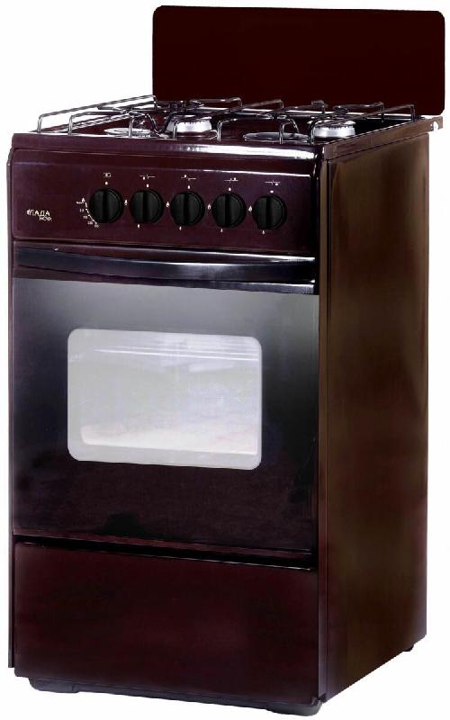 Габаритные размеры, см 50 х 60 х 85 * Тип плиты газовая * Цвет коричневый * Объем духовки 50л., Двойное стекло дверцы духовки * полный газ-контроль * Материал эмаль * 4-х горелочная * щиток, проволочная решетка стола, хоз. отсек, решетка духовки, жаровня *