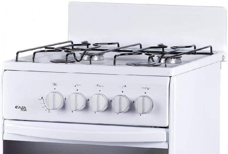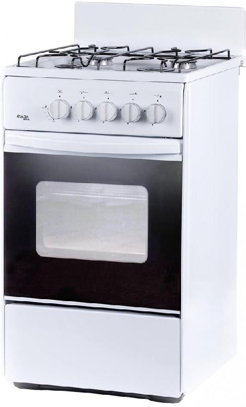 Габаритные размеры, см 50 х 60 х 85 * Тип плиты газовая * Цвет белый * Объем духовки 50л., Двойное стекло дверцы духовки * полный газ-контроль * Материал эмаль * 4-х горелочная * щиток, проволочная решетка стола, хоз. отсек, решетка духовки, жаровня *