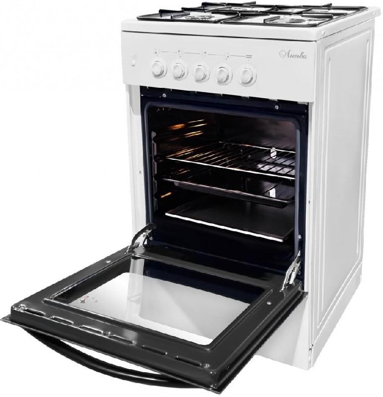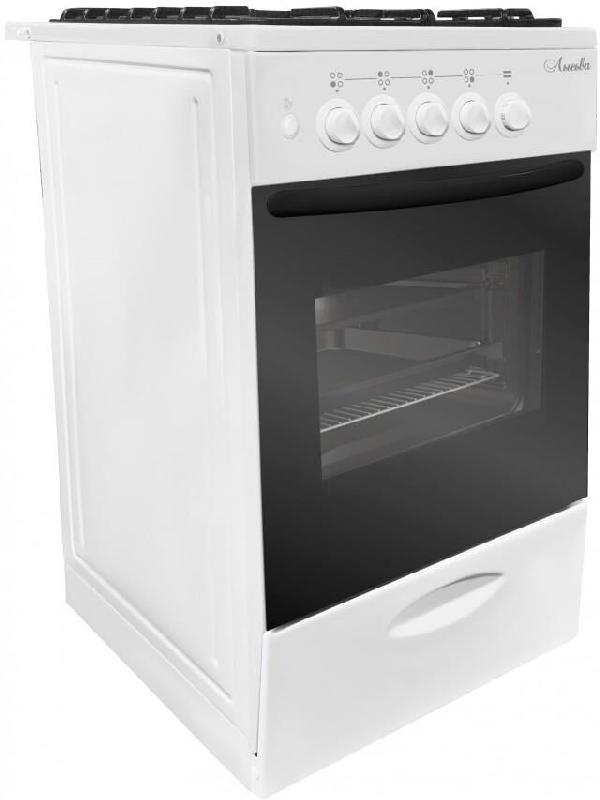 ШхГхВ)50х60х84см.Цвет белый.Тип рабочей поверхности газовая.Количество конфорок 4.Масса НЕТТО (БРУТТО), кг32 (38).Мощность конфорок, кВт (передняя левая)1.5.Тип решетки варочной поверхности стальная эмалированная. Электроподжиг.Тип духовки газовая.Объём духовки, л 57.Газ-контроль духовки. Мощность, кВт2.3.Подсветка.Дверца с двойным стеклом.Комплект инжекторов на сжиженный газ.Место для хранения кухонных принадлежностей.Подставка для посуды малого диаметра.Противень.Решетка.Стеклянная крышка.