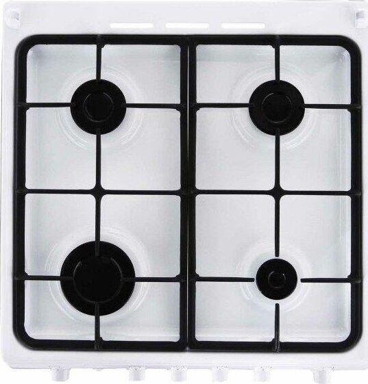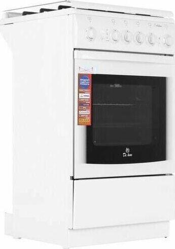 Габариты 850*500*500 Вес, кг - 39 Основные характеристики варочной поверхности: Электророзжиг 4 газовые конфорки 1,0/1,75/1,75/3,0 кВт Основные характеристики духового шкафа: Терморегулятор Освещение Вертел Гриль Механический таймер Объём духовки 43 л. Комплектация: Большой противень Малый противень Чугунная решётка Решётка для жарки Стеклянная крышка рабочего стола Хозяйственный отсек Техническое описание: Цвет - белый