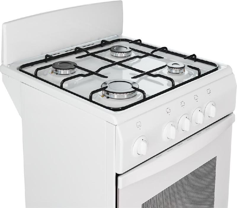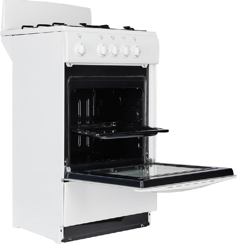 Газовая плита, газовая духовка, цвет белый. 4 газовые конфорки 1,0/1,75/1,75/3,0 кВт . Материал рабочей поверхности эмалированная сталь. Материал решетки эмаль. Управление механическое. Объём духовки 46 л. Газ-контроль духовки. Комплектация: противень, никелированная решётка рабочего стола, щиток, хозяйственный отсек. Размеры (ШхВхГ) 50 х 85 х 50 см. Вес 32 кг.