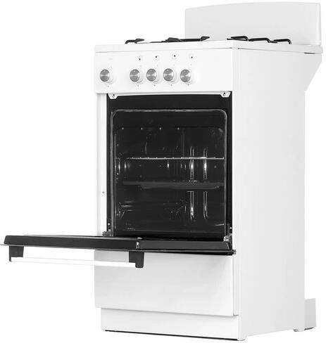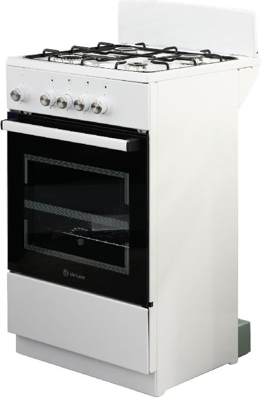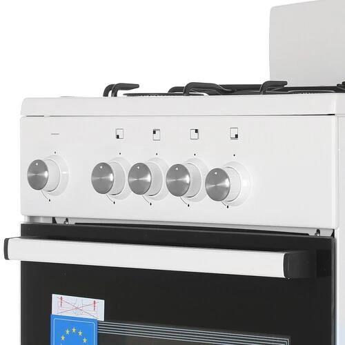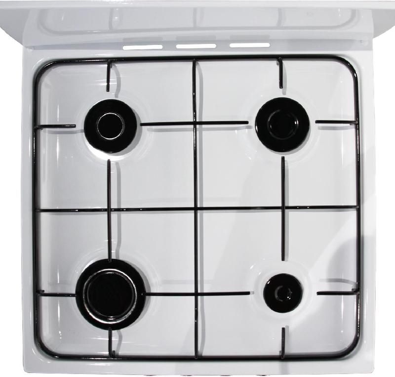 Размеры, мм - высота/ширина/глубина – 850/500/500 * Цвет - белый * 4 газовые конфорки 1,0/1,75/1,75/3,0 кВт * Газ-контроль духовки * Объём духовки 43 л. * Большой противень * Эмалированная решётка * Металлический щиток рабочего стола * Хозяйственный отсек *