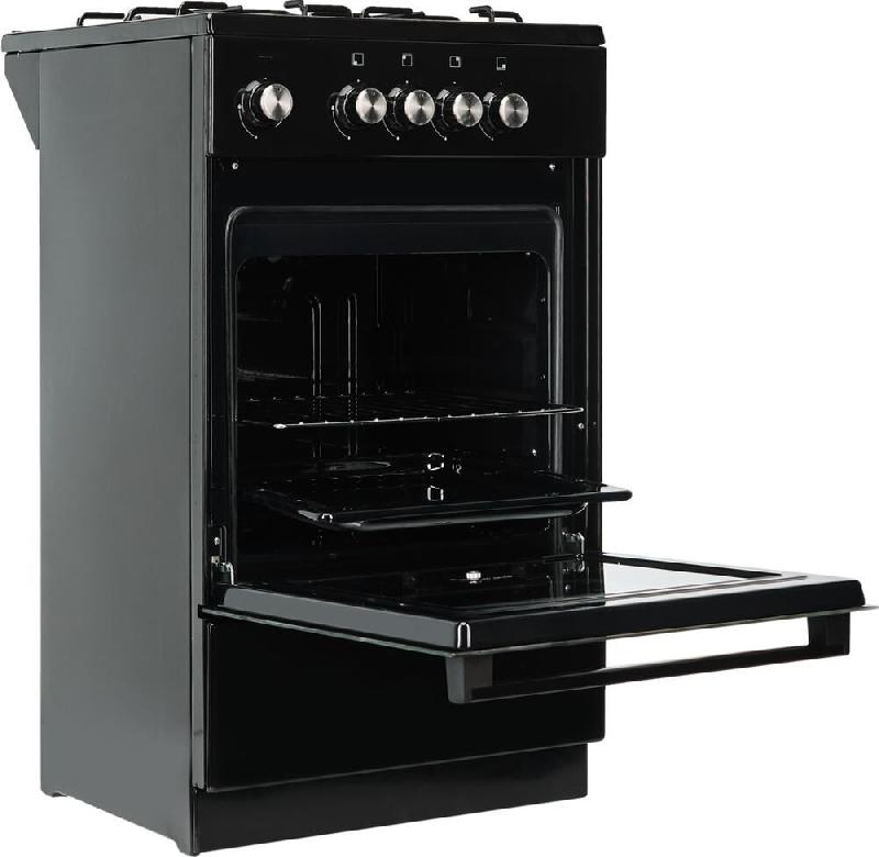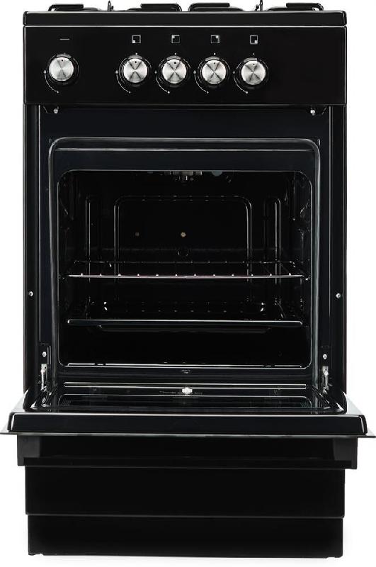 Типоразмер 50*50см, духовка с газ-контролем духового шкафа, духовка - 43 л, 1 противень, цвет черный, черная эмалированная решетка рабочего стола, ЦВЕТ ЧЕРНЫЙ ГЛЯНЦЕВЫЙ. Данная модель дополнена удобным ящиком для хранения кухонных принадлежностей.