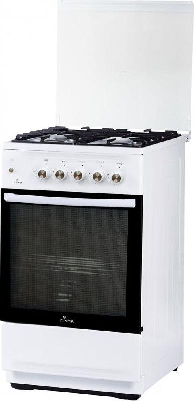 Габаритные размеры (В*Ш*Г) 85*50*60 см * Цвет белый * Духовка газовая * Рабочий стол накрывается практичной стеклянной крышкой, которая легко очищается от жира и копоти. Съемная дверца. Быстрый разогрев духовки. Противень ProCook Объем духовки 50 л. Стекло дверцы духовки 2-слойное. Максимальная температура 270 *С. Тип конфорок газовые 4 шт. Электроподжиг конфорок автоматический. Газконтроль духовки. Тип освещения лампа накаливания. Тип управления механический. Внутреннее покрытие эмалированная сталь. Решетка чугунная. Крышка варочной поверхности стеклянная. Ящик для посуды откидной. Металлическая решетка. Вес 35 кг.