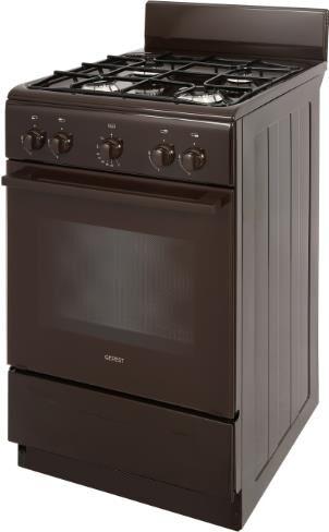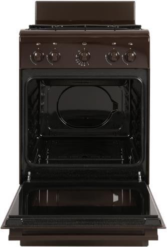 Габариты ШхГхВ, см: 50х58,5х85; Объем духового шкафа, л: 52; Тип очистки: Гидролизная; Тип подключения: Газовый; Количество зон приготовления: 4; Цвет модели: Коричневый; Материал варочной поверхности: Эмаль; Материал решеток варочной поверхности: Сталь; Крышка плиты: Щиток; Тип направляющих духового шкафа: Штампованные; Внутреннее покрытие духового шкафа: Эмаль легкой очистки SMART CERAMIC; Количество стекол в дверце духового шкафа: 2; Ящик для посуды и принадлежностей: Откидная крышка; Контроль температуры духового шкафа: Кран с безопасностью; Нижний нагрев; Жаровня: 1; Регулировочные ножки; Комплект сменных сопел; Противень: 1; Решетка варочной поверхности: 1; Решетка духового шкафа: 1; Диапазон номинального напряжения сети, В: 220-230; Номинальная частота сети, Гц: 50; Основная горелка духового шкафа, Вт: 2350