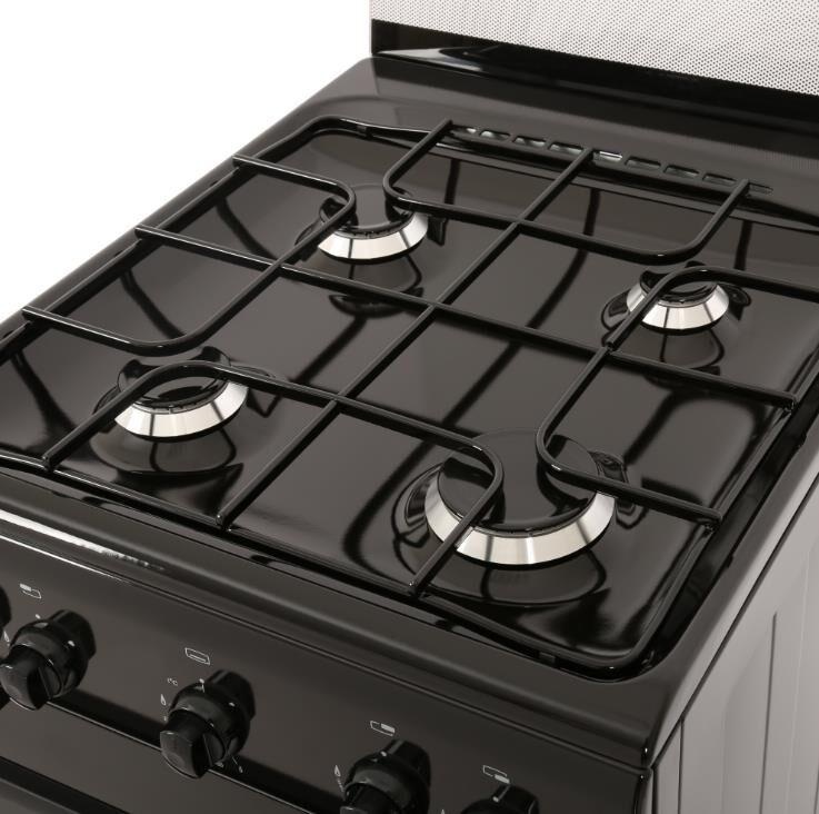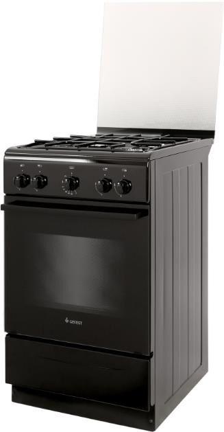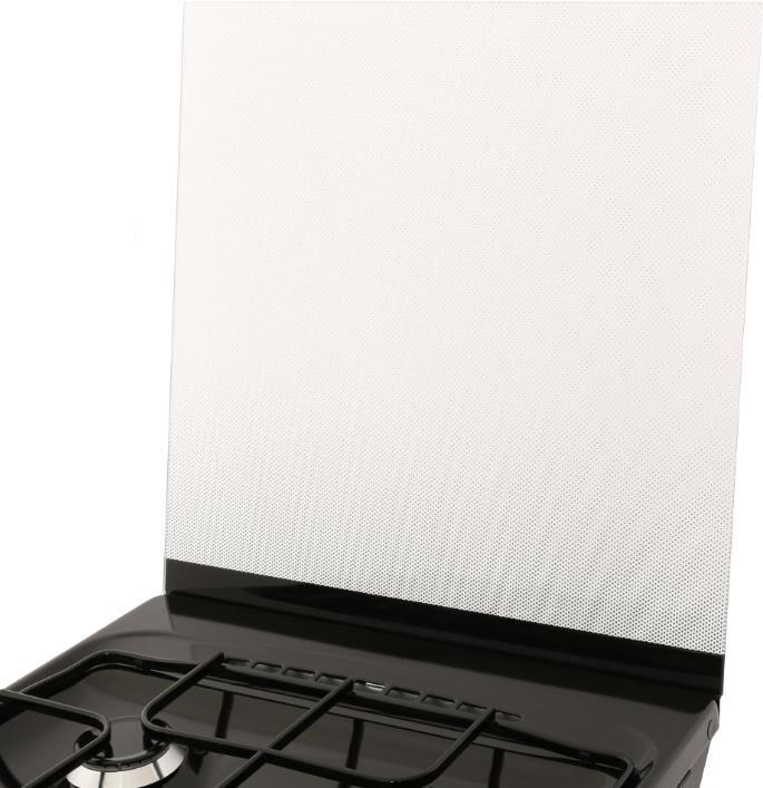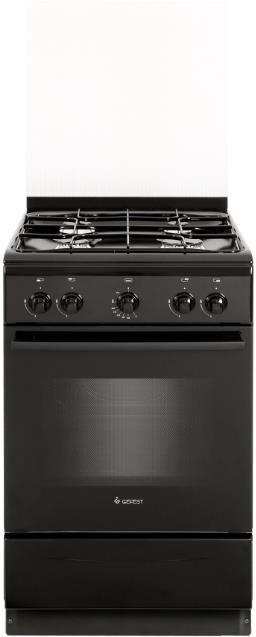 Габариты ШхГхВ, см: 50х58.5х85; Объем духового шкафа, л: 52; Тип очистки: Гидролизная; Цвет: Черный; Материал варочной поверхности: Эмаль; Материал решеток варочной поверхности: Сталь; Крышка плиты: Стеклянный щиток; Газ-контроль горелок стола; Тип направляющих духового шкафа: Съемные проволочные; Внутреннее покрытие духового шкафа: Эмаль легкой очистки SMART CERAMIC; Количество стекол в дверце духового шкафа: 2; Ящик для посуды и принадлежностей: Откидная крышка; Контроль температуры духового шкафа: Кран с безопасностью; Нижний нагрев; Жаровня: 1; Регулировочные ножки; Комплект сменных сопел; Противень: 1; Решетка варочной поверхности: 1; Решетка духового шкафа: 1; Диапазон номинального напряжения сети, В: 220-230; Номинальная частота сети, Гц: 50; Основная горелка духового шкафа, Вт: 2350