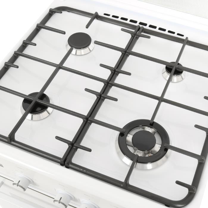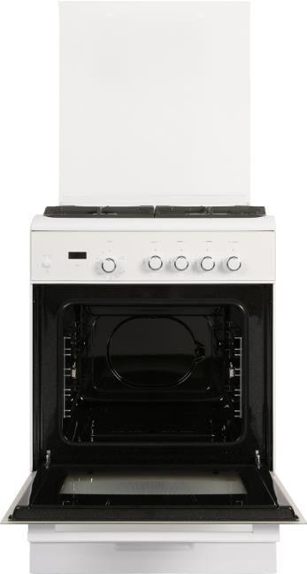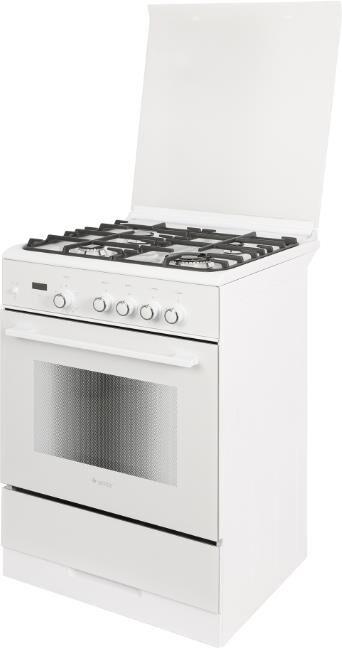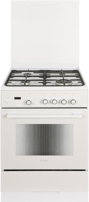Габариты ШхГхВ, см: 60х60х85; Тип подключения: Газовый; Объем духового шкафа, л: 52; Количество зон приготовления: 4; Цвет: Белый; Материал варочной поверхности: Эмаль; Материал решеток варочной поверхности: Чугун; Двухзонная горелка варочной поверхности; Крышка плиты: Стеклянная; Газ-контроль горелок стола; Газ-контроль духового шкафа; Электророзжиг горелок стола: Розжиг встроен в ручки; Электророзжиг духового шкафа: Розжиг встроен в ручки; Таймер: Сенсорный; Тип направляющих духового шкафа: Съемные проволочные; Тип очистки: Гидролизная; Внутреннее покрытие духового шкафа: Эмаль легкой очистки SMART CERAMIC; Количество стекол в дверце духового шкафа: 2; Телескопические полки; Ящик для посуды и принадлежностей: Выдвижной ящик; Внутреннее освещение духового шкафа: Одинарное; Контроль температуры духового шкафа: Термостат; Гриль; Нижний нагрев; Горелка гриль, Вт: 1900; Диапазон номинального напряжения сети, В: 220-230