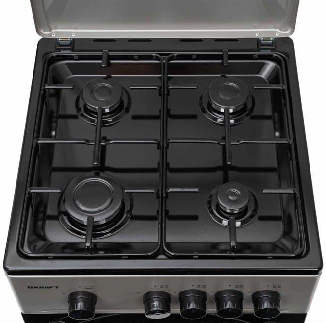 Габариты (ШхГхВ), мм - 500х550х855 Цвет - серый/черный Мощность конфорок, Вт - 1000/1750/1750/2850 Крышка варочной поверхности - металлическая Решетка - эмалировання сталь Духовой шкаф - газовый Газ-контроль - духовой шкаф Термометр на дверце - есть Объем духового шкафа, л - 58 Количество стекол дверцы, шт. - 2 Внутренняя подсветка - нет Вес нетто / брутто, кг - 27/28,5 размеры в упаковке (ШxГxВ) (мм) - 512x562x870