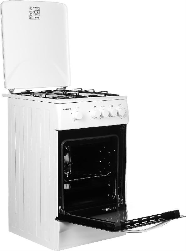 (ШхГхВ)50х63х87см.Цвет белый.Количество конфорок, шт 4.Количество режимов работы, шт1.Объем духовки, л 58.Тип очистки очистка паром.Тип управления механическое.Расположение панели управления спереди.Переключатели поворотные.Электроподжиг конфорок.Тип электроподжига конфорок механический Электроподжиг духовки.Тип электроподжига духовки автоматический. Газ-контроль конфорок.