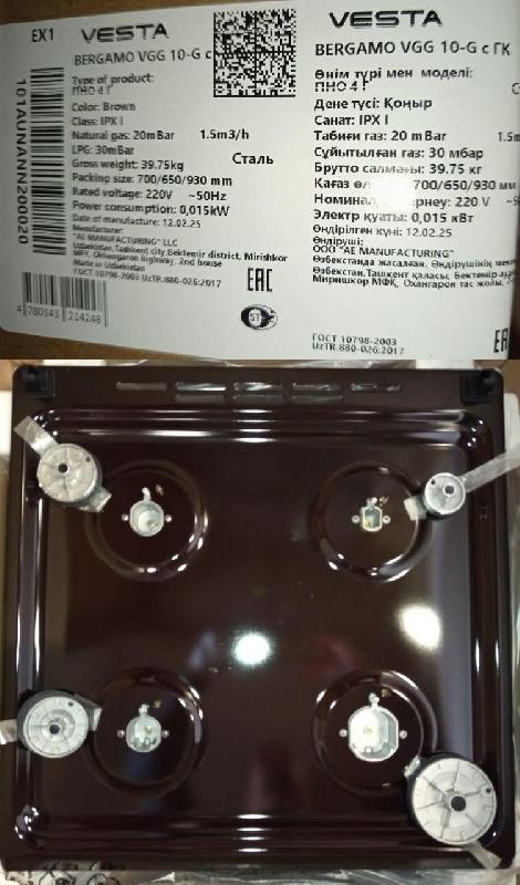 Плита газовая VESTA Bergamo VGG 10-G Коричневый ГК