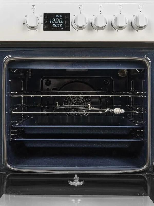 Габариты и вес: (ШхВхГ) 60х85х60. Вес 40 кг * Цвет белый * Материал конфорок сталь * Газ-контроль конфорок * Материал решеток чугун * Электроподжиг варочной поверхности * Тип духовки электрическая. Объем 65л * Конвекция в духовке * Гриль * Вертел * Термостат * Подсветка духовки * Звуковой сигнал. Отключение звукового сигнала * Дисплей * Часы * Таймер * Ящик для посуды * Регулируемые ножки * Настроенный вид газа природный (магистральный). Форсунки в комплекте на сжиженный *
