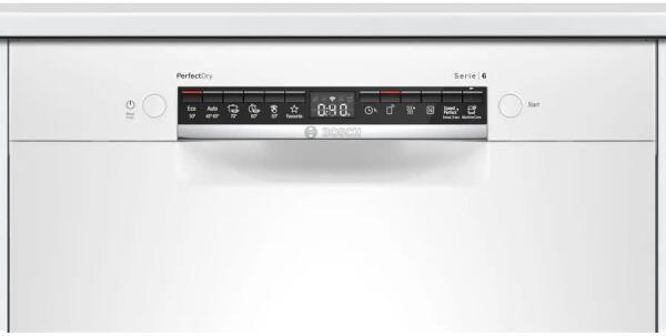 Частично встраиваемая посудомоечная машина Bosch SMU6ZCW00S оснащена электронной панелью управления в черном цвете с небольшим дисплеем, на котором можно узнать сколько осталось до конца программы. HomeConnect позволит управлять устройством даже, если вы далеко от дома. Выбирайте и устанавливайте различные функции через приложение на телефоне. Режим Machine Care предназначен для очистки самого прибора без посуды. Эта функция омывает внутреннюю часть камеры при повышенной температуре так, чтобы убрать загрязнения.