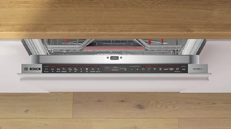 Встраиваемая посудомоечная машина Bosch SMD8TCX04E серии 8 - это высокотехнологичный помощник на вашей кухне. Панель управления выполнена в строгом черном цвете, что придает машине современный и стильный вид. Закрытая панель управления с сенсорными кнопками обеспечивает удобство и простоту использования. Модель оборудована инверторным двигателем EcoSilence Drive, который обеспечивает тихую и эффективную работу. Уровень шума составляет всего 42 дБ, что позволяет использовать машину даже ночью без беспокойства о беспокойстве. Вместительность машины составляет 14 комплектов посуды, что делает ее идеальным выбором для больших семей или тех, кто любит устраивать большие вечеринки.