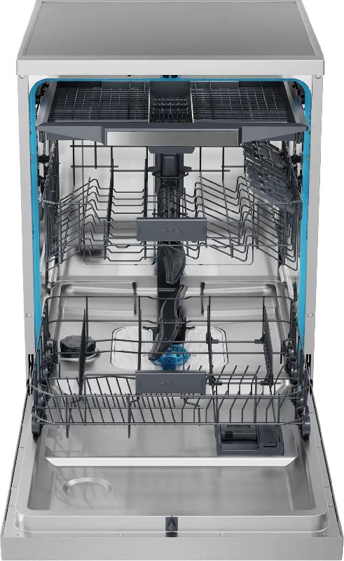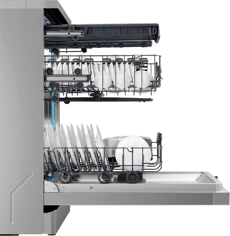 Посудомоечная машина шириной 60 см HDWE15-58CS2RU рассчитана на загрузку до 15 стандартных комплектов посуды, такая большая вместимость поможет помыть за один цикл всю посуду практически в любой жизненной ситуации. В нижней и средней корзине есть складные держатели, а среднюю корзину можно также отрегулировать по высоте, чтобы максимально удобно загрузить всю посуду. Важная особенность этой модели — автоматическое открывание двери в конце программы мойки. Так посуда высохнет более быстро и качественно без дополнительного расхода электроэнергии.