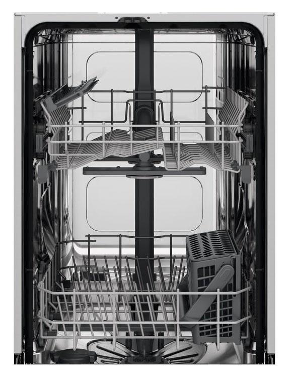 Встраиваемая посудомоечная машина Electrolux EEA22100L представлена в белом цвете. Модель вмещает в себя до 9 комплектов посуды, поэтому она отлично подойдет для большой семьи. Она встраивается в нишу высотой от 82 см, глубиной — 55 см, шириной — 45 см. Класс энергоэффективности устройства — А+++. За цикл оно расходует менее 9,9 л воды. Благодаря стандартному двигателю уровень шума во время работы прибора не превышает 47 дБ. Польские производители гарантируют безопасное и длительное использование.