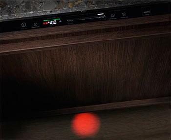 Посудомоечная машина бесшумно информирует вас о текущем статусе программы мойки с помощью светового индикатора Луч на полу. Вы легко можете пропустить звуковой сигнал, но не пропустите световой индикатор на полу под прибором. Когда он красный, программа запущена, когда зеленый, посуда вымыта.